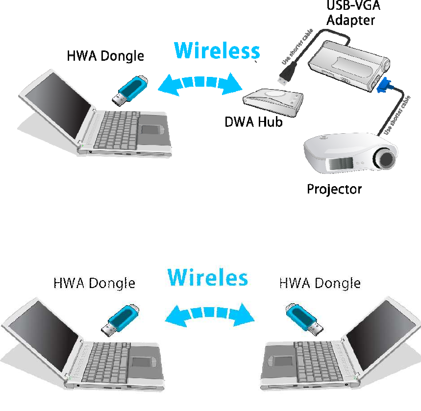 to wired USB device with a wireless DWA hub. WiNet mode is an IP-based
