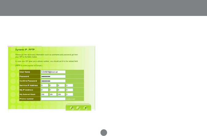 • Dynamic IP - PPTP: Complete fields on this screen.