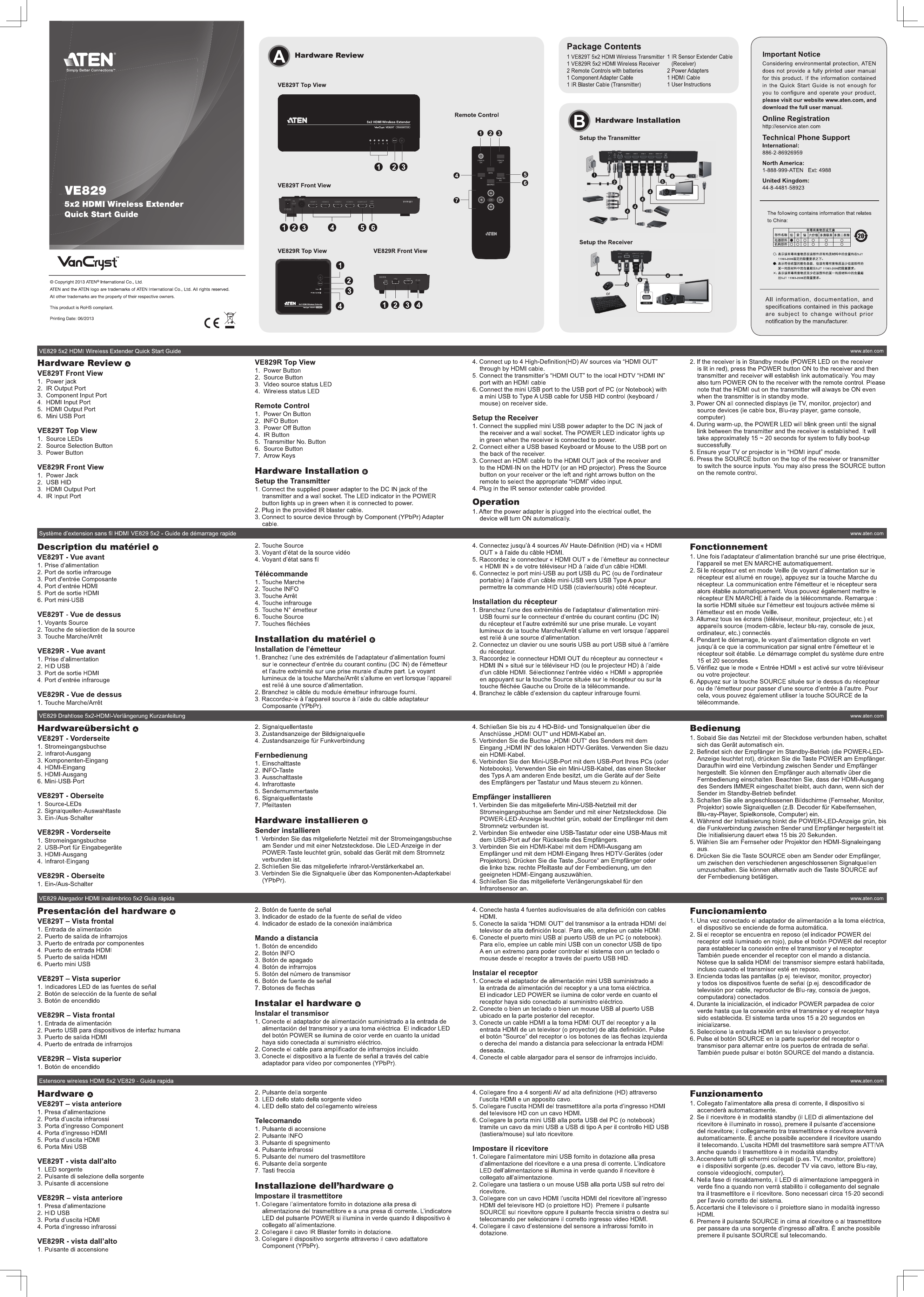ATEN Technology IOGEAR GWHDMS52 Wireless 5 x 2 HD Matrix Transmitter User Manual 0 ve829 qsg IB04700299 130613