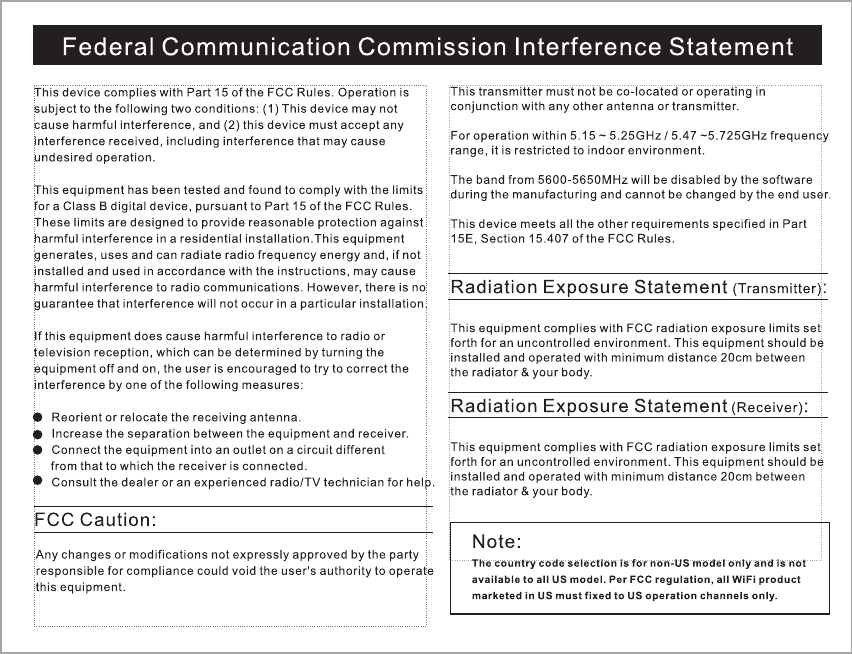 ATEN Technology, Inc., dba IOGEAR Wireless 5 x 2 HD Matrix Transmitter GWHDMS52 T UserMan Warning