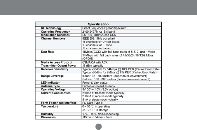 • Backward compatible with 802.11b wireless networks, access points, hot spots and other devices