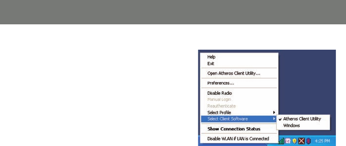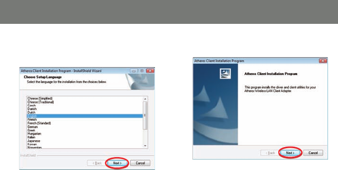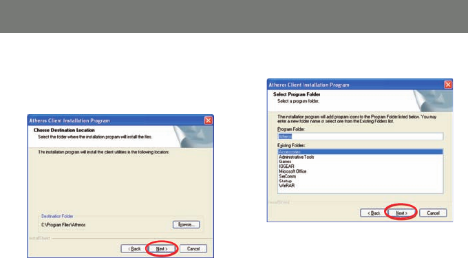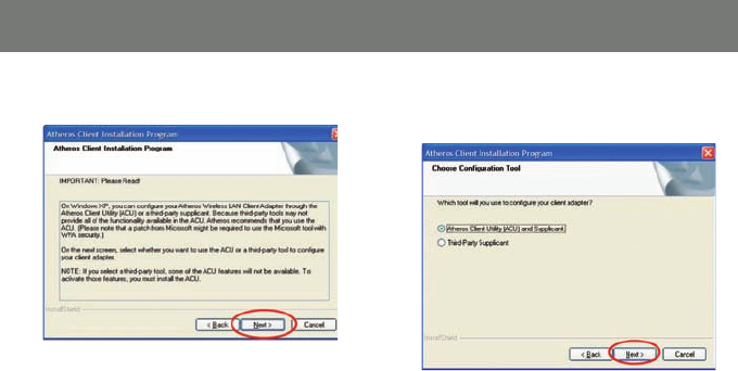 9. Click Next to continue 10. Select Atheros Client Utility (ACU) and