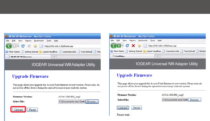 Step 6: Click “Upload”tostartthermwareupgradeprocess.