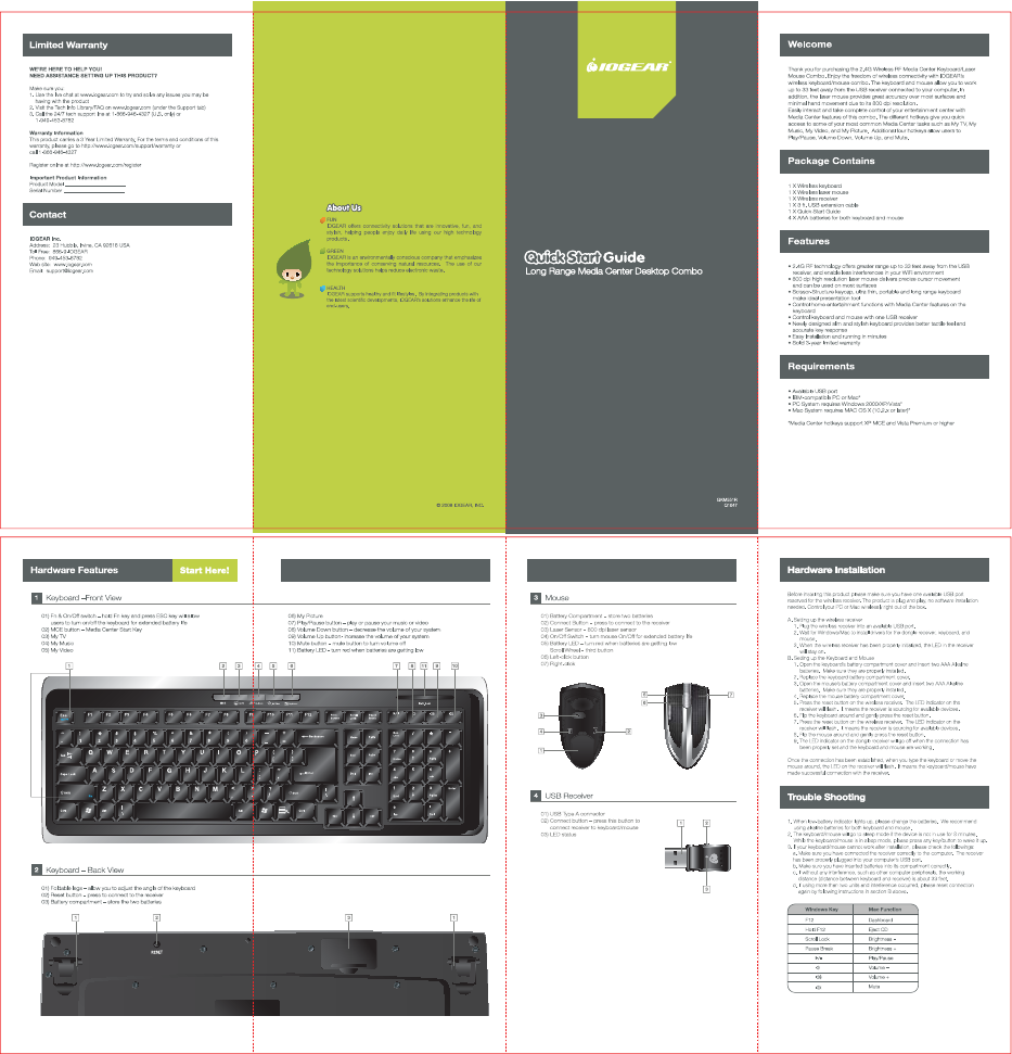 ATEN Technology, Inc., dba IOGEAR Long Range Media Center Desktop Combo(Keyboard) GKM551R USER S MANUAL 0520