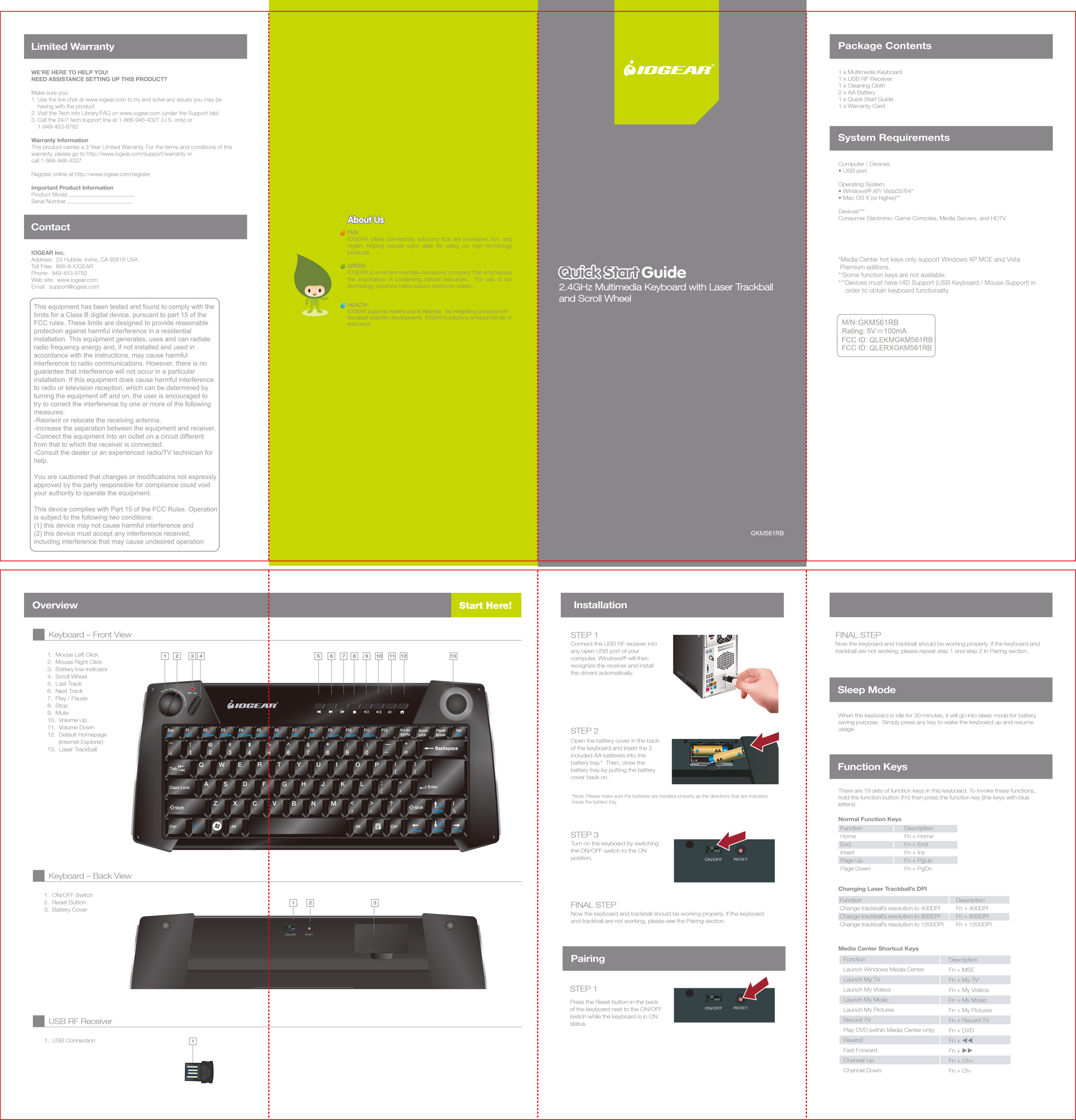 ATEN Technology IOGEAR RXGKM561RB 2.4G Multimedia Keyboard Receiver User Manual