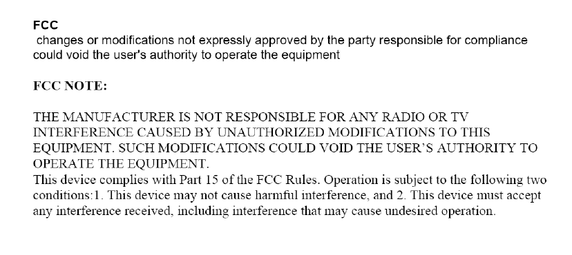 Note: This equipment has been tested and found to comply with the limits for a Class