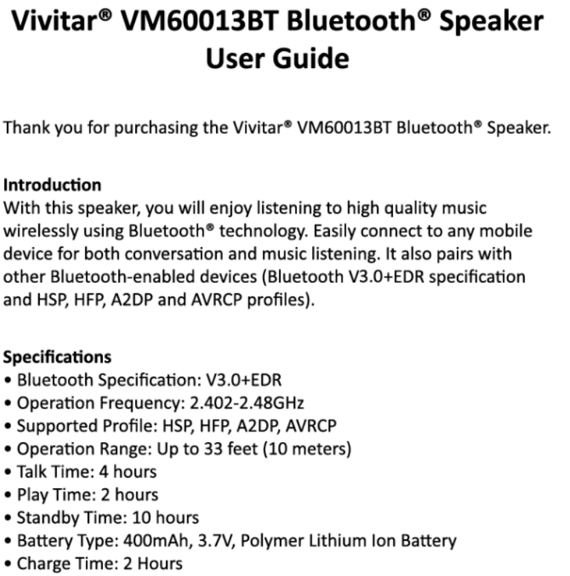 ATI Electronics SP048 Bluetooth Speaker User Manual usermanual