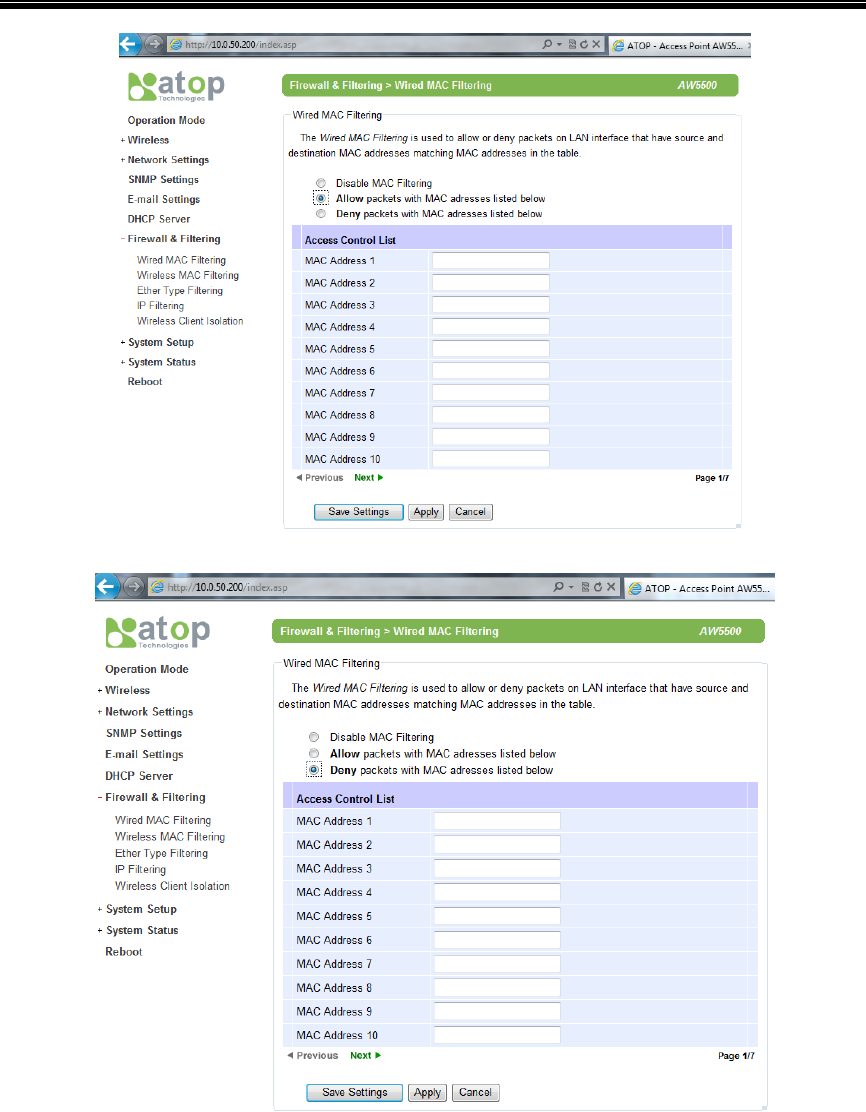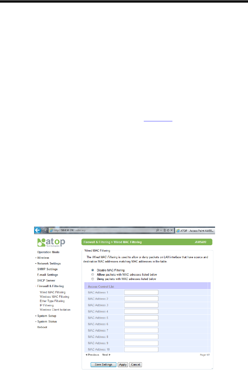3.8.1 Wired MAC Filtering ........................................................... 37