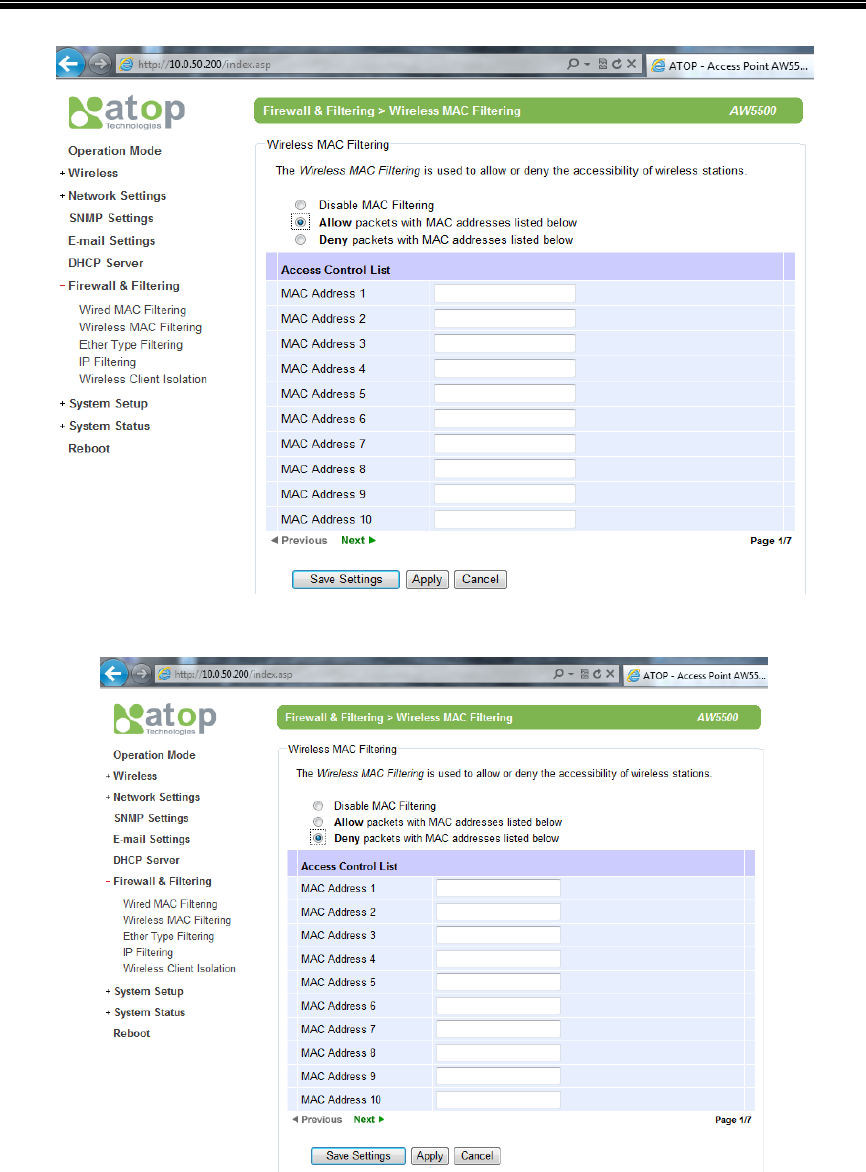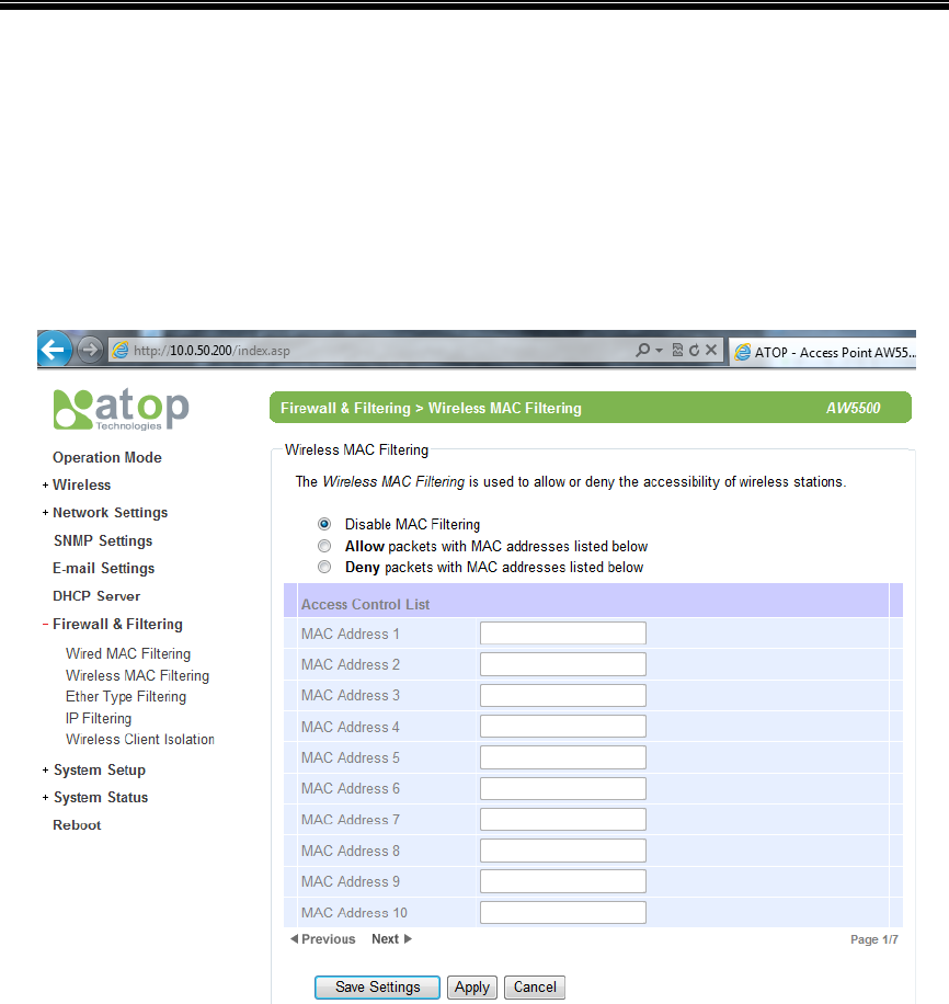 3.8.2 Wireless MAC Filtering ...................................................... 39