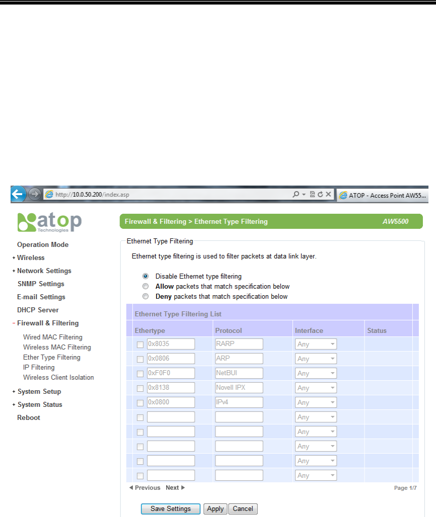 3.8.3 Ethernet Type Filtering ...................................................... 41