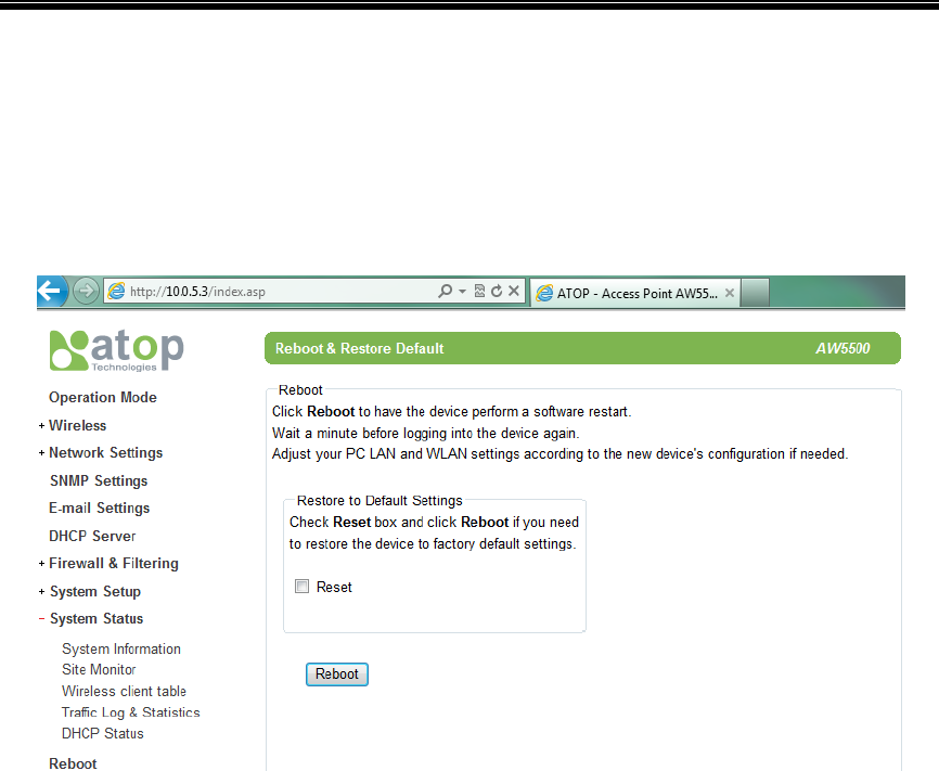 3.11 Reboot and Restore Default Settings ..................................... 58