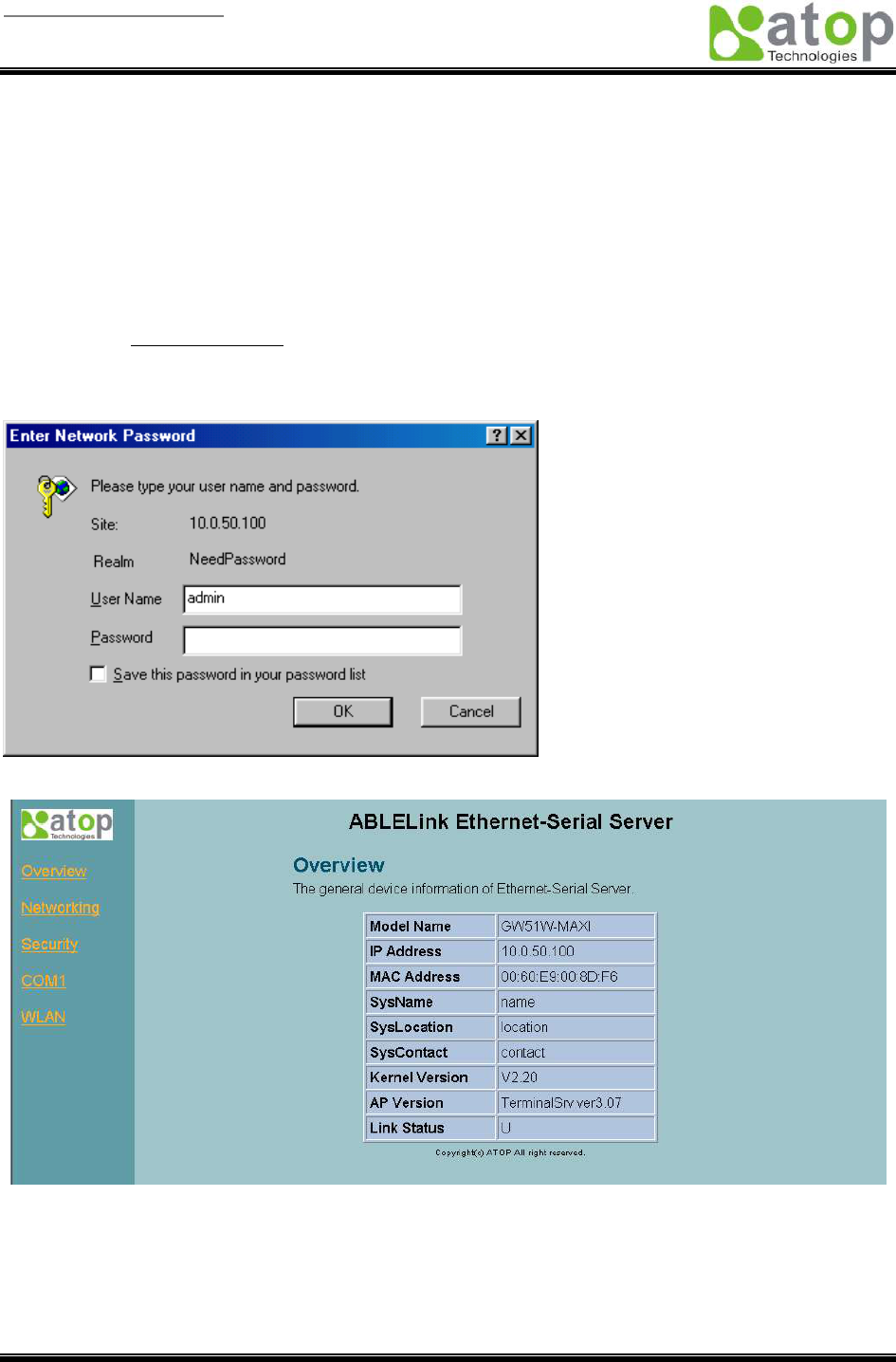 ATOP Technologies SW2001-WGN1 Wireless Serial Server User Manual Manual