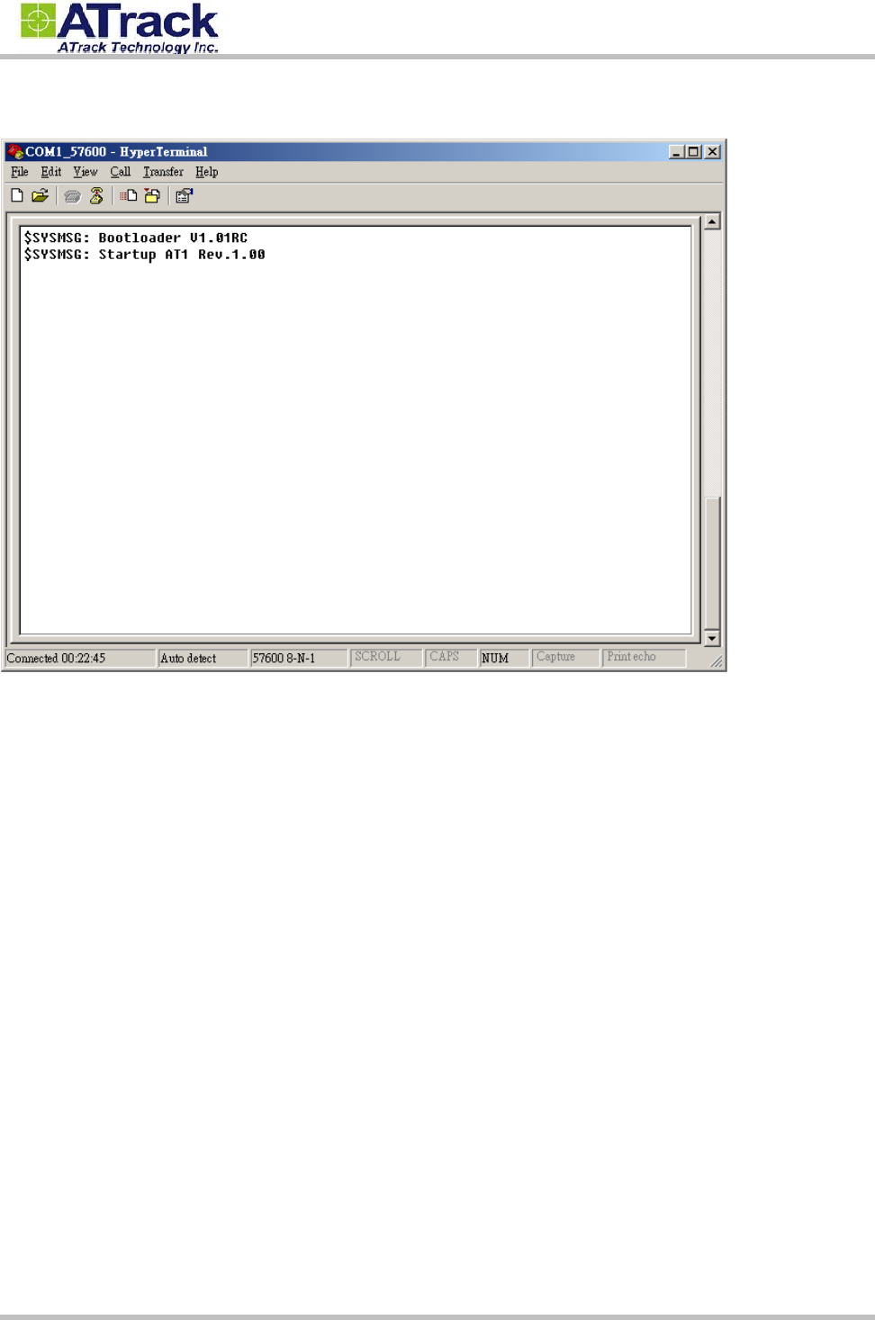 (6) Power ON the device. The startup message will show on the screen. The device AT command can be sent