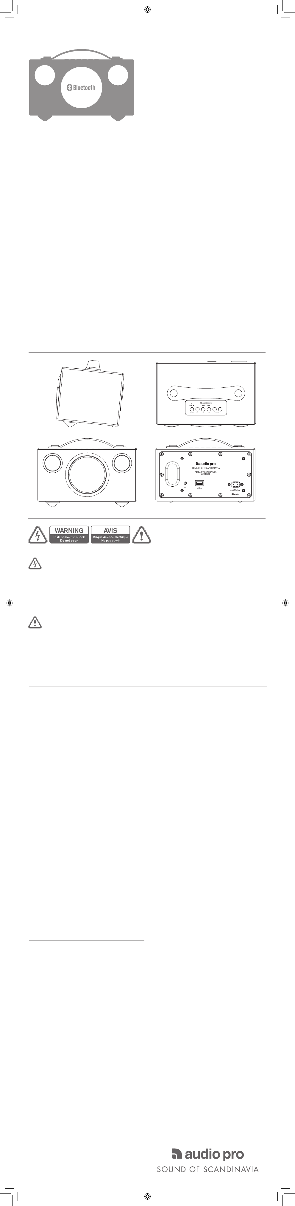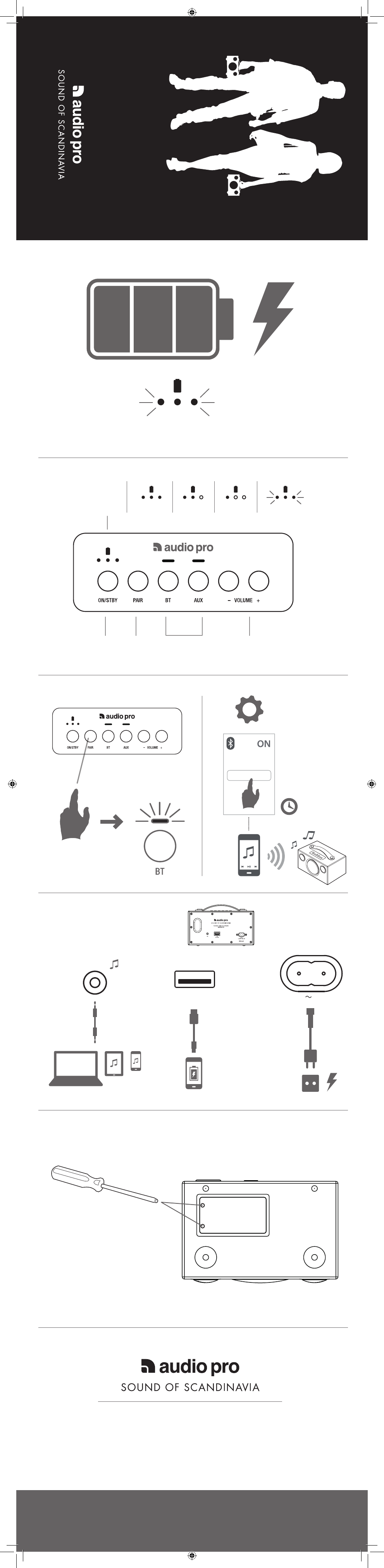 © Audio Pro AB Sweden. Audio Pro®, the Audio Pro logotype, the ‘a’ symbol, and ace-bass® are all registered trademarks of Audio Pro AB, Swe-