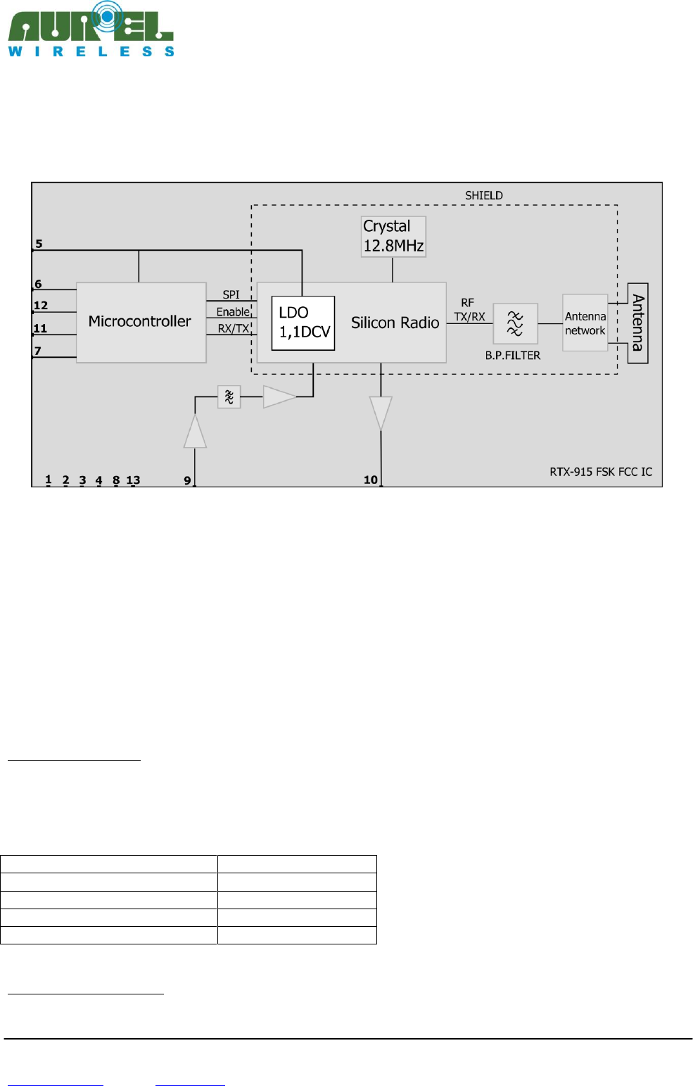 Avec l'intégration de la "AUREL RTX-915 FSK FCC IC" dans le produit final, l'OEM doit garantir FCC (Federal