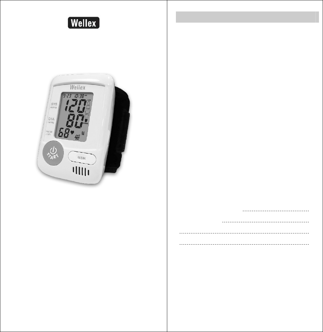 Blood Pressure Monitor Features....................3