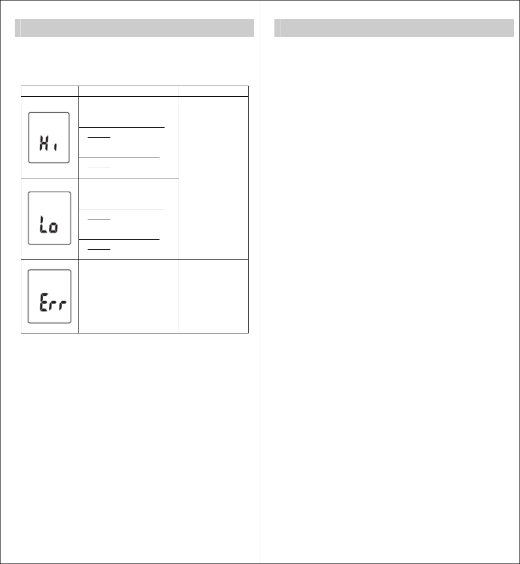 Indications for battery condition and measuring range.