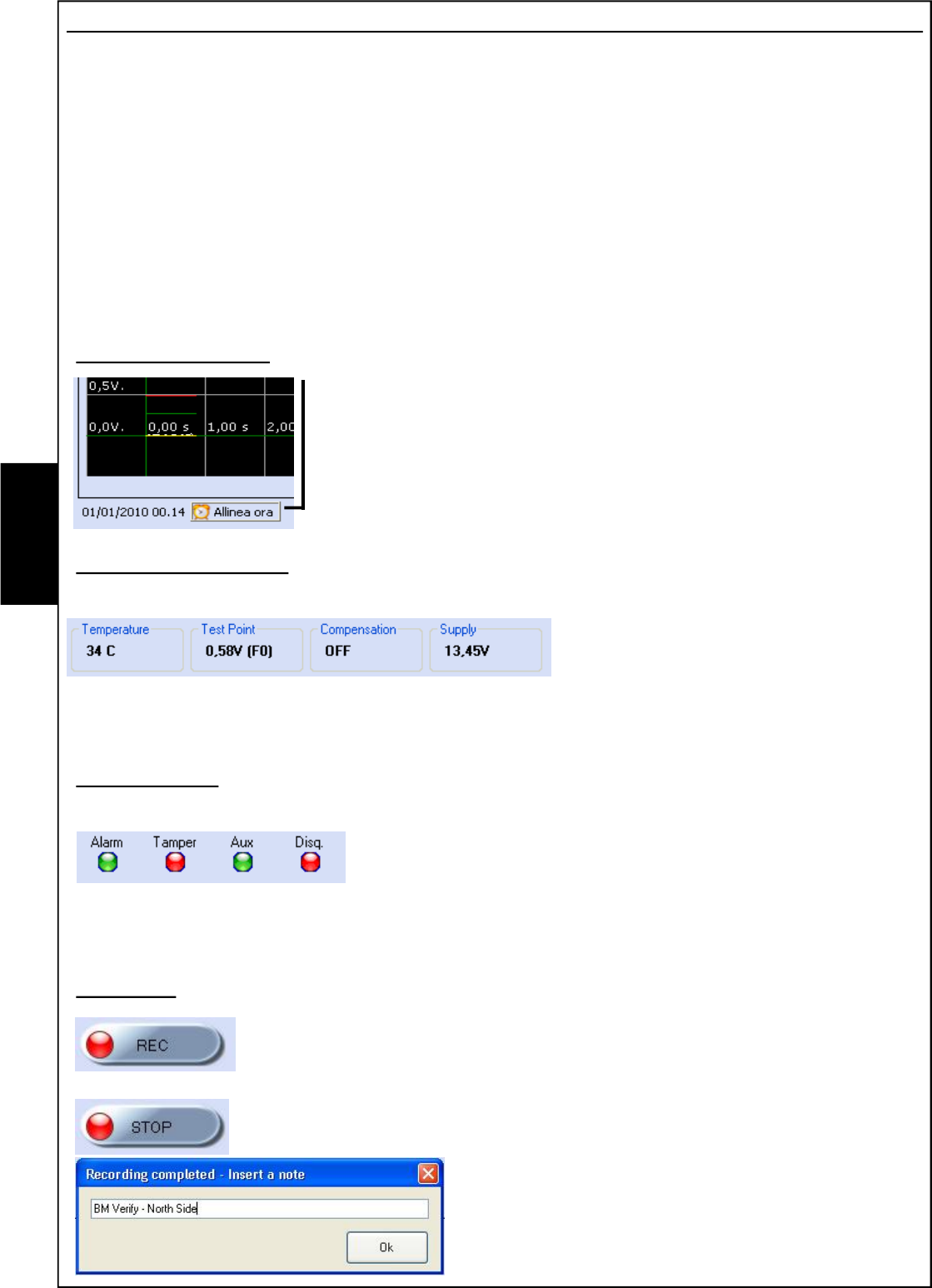 displaying the signals recorded by the installer