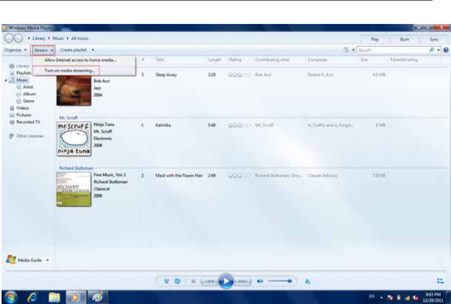 ⑤ Music streaming: Go to Music Library then right-click on photo file you want to