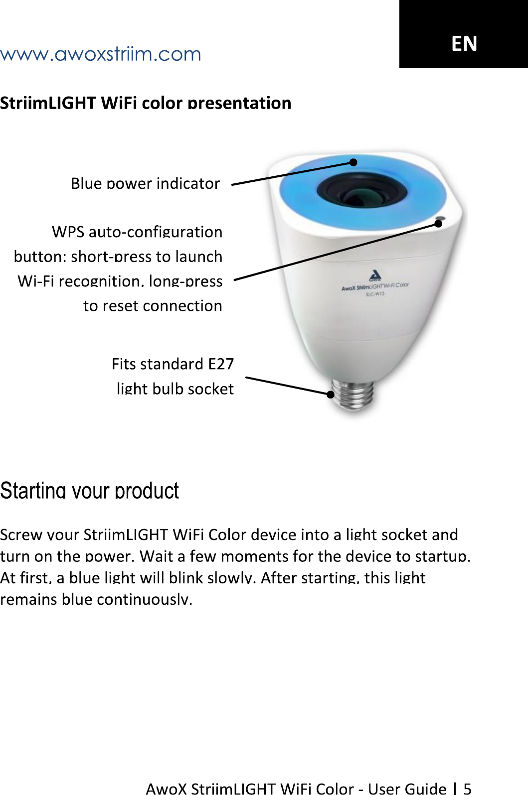 AWOX SLCW13 AwoX StriimLIGHTTM Wi-Fi Color User Manual rev
