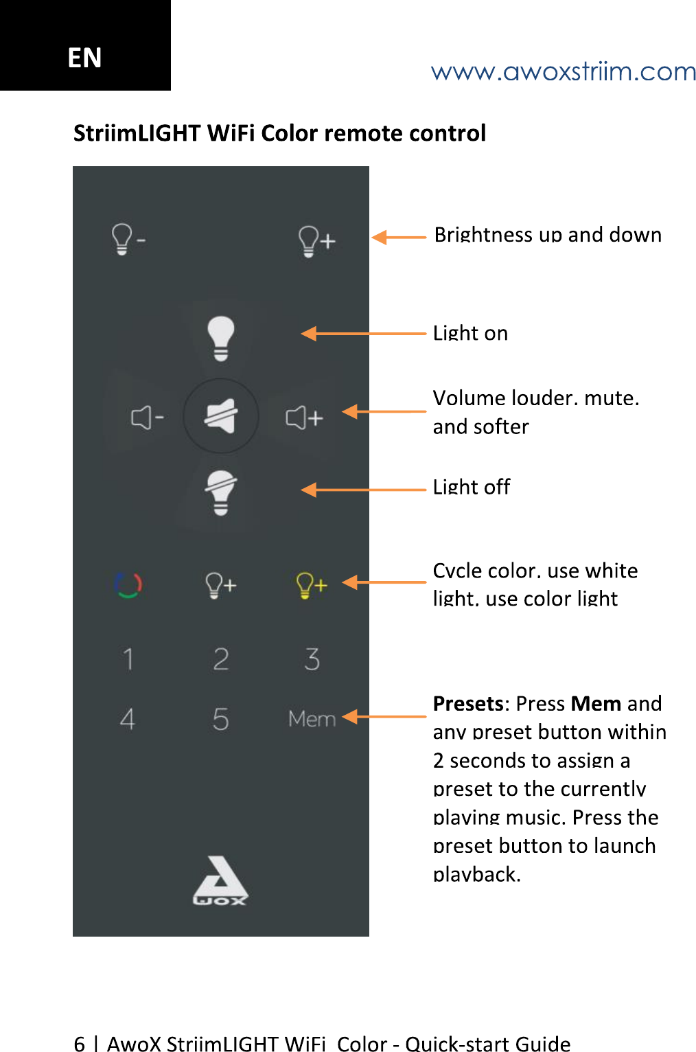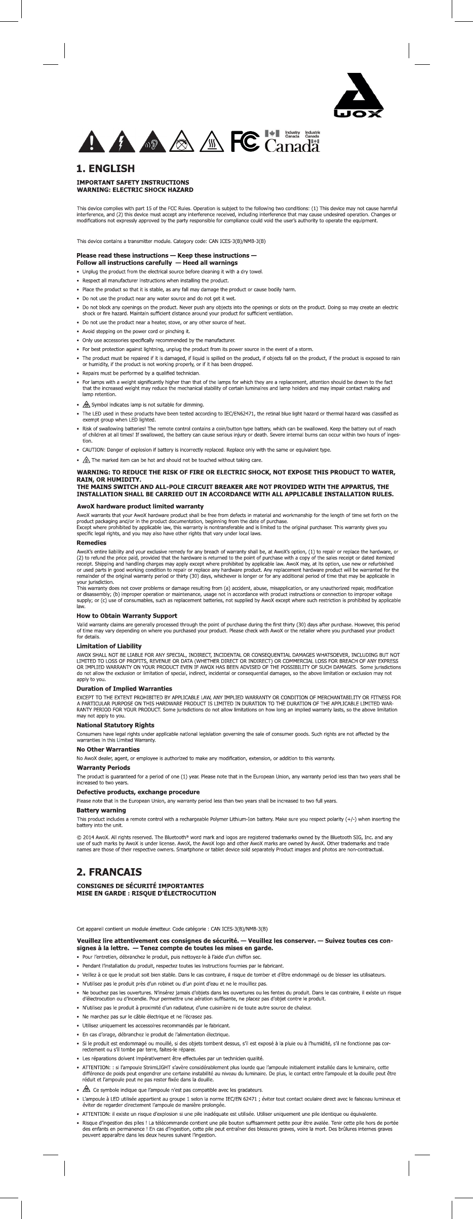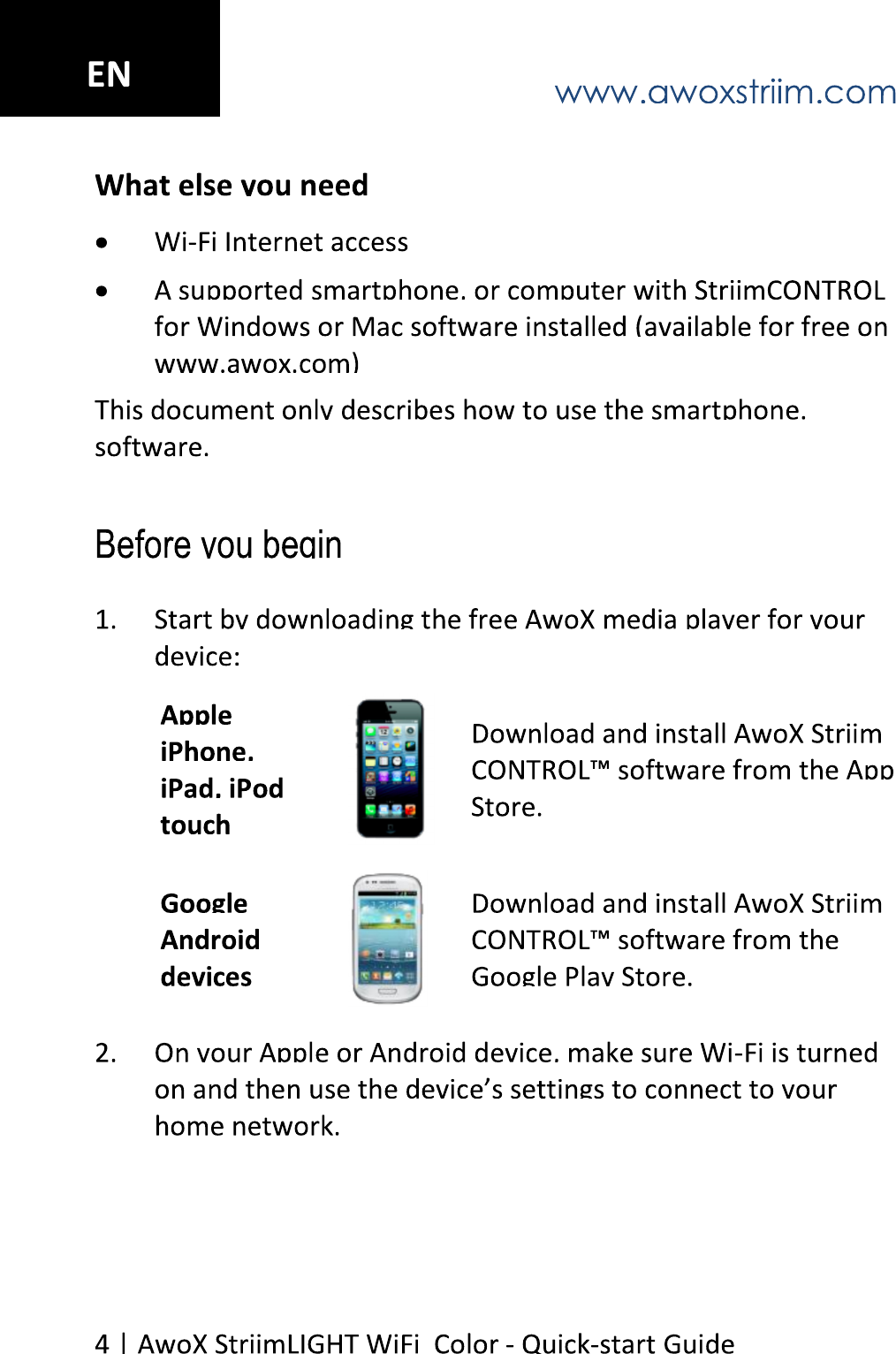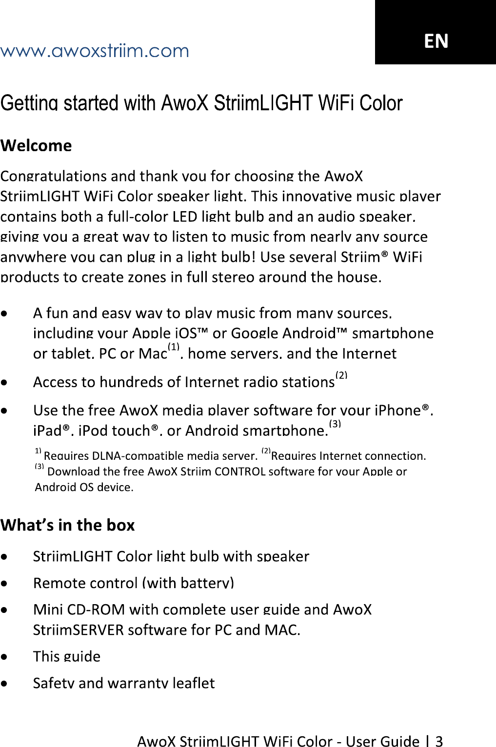 AWOX SLCW13 AwoX StriimLIGHTTM Wi-Fi Color User Manual rev