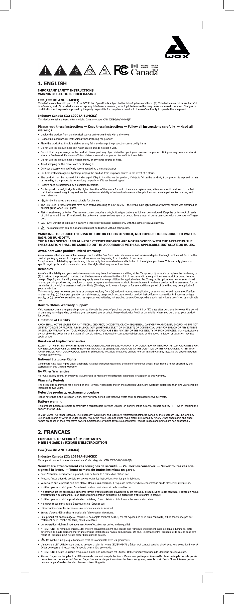 © 2014 AwoX. Todos los derechos reservados. AwoX