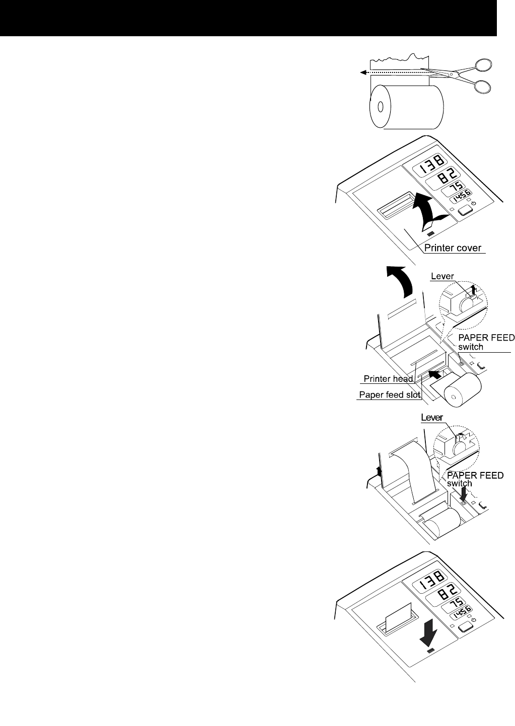 HU The printer head is up. Lower the lever and lock the printer paper in position.