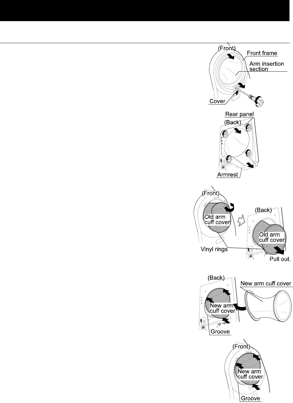 When the arm cuff cover becomes dirty or it is worn out, replace with a new one. Refer to “9-1