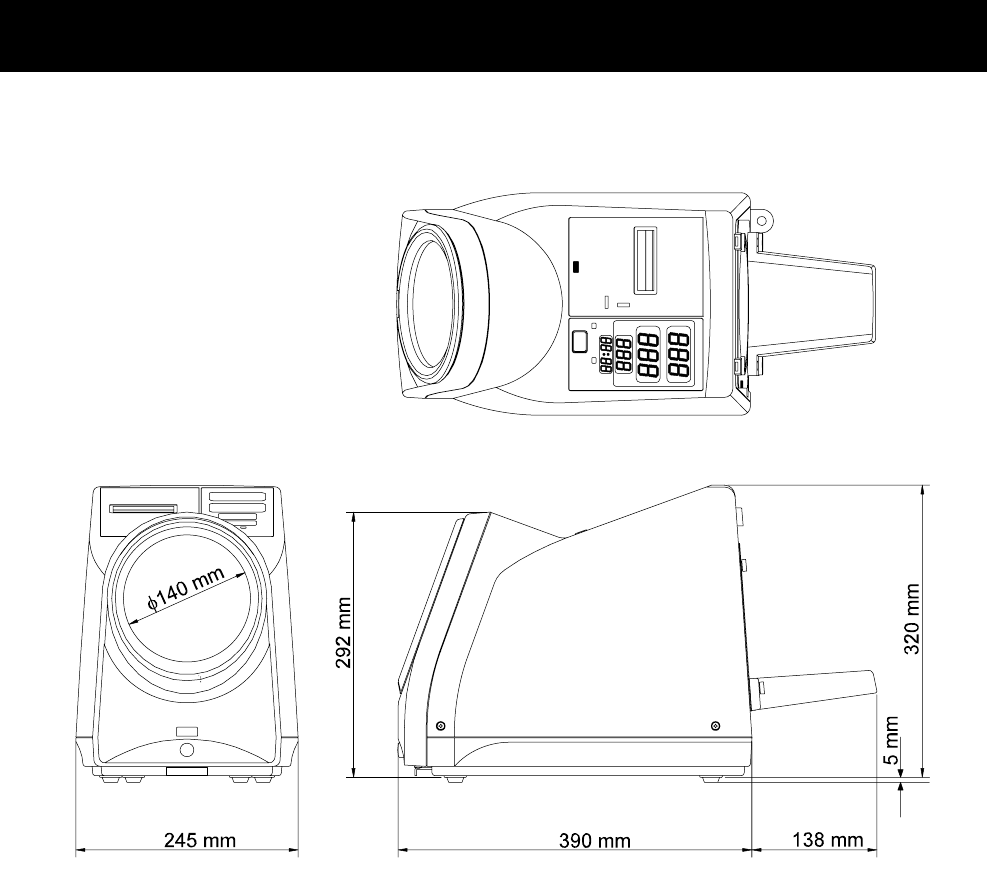 The illustration above indicates the TM-2655P with the printer unit. The dimensions are the same for