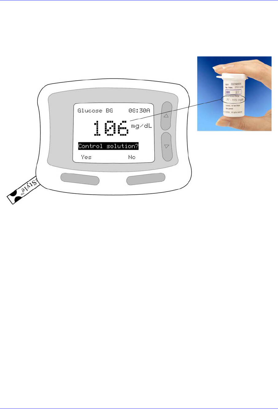 • If you get a Control Solution test result that falls outside the range printed on the