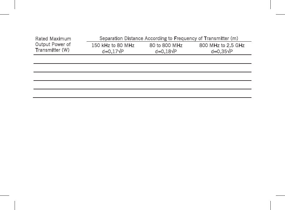 NOTE: For transmitters rated at a maximum output power not listed above, the recommended