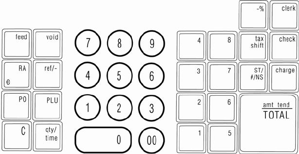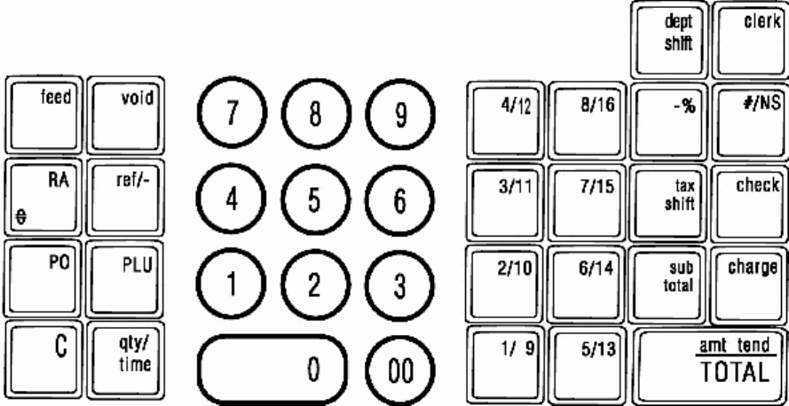 15. [ #/NS ] - Non Add/No Sale Key - Opens the cash drawer and prints reference data, like driver's license, telephone or