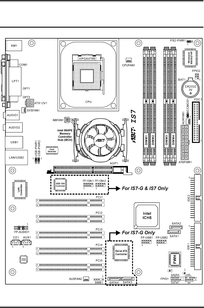 • Intel 82865PE (MCH) + 82801ER (ICH5R) (IS7-G/IS7)