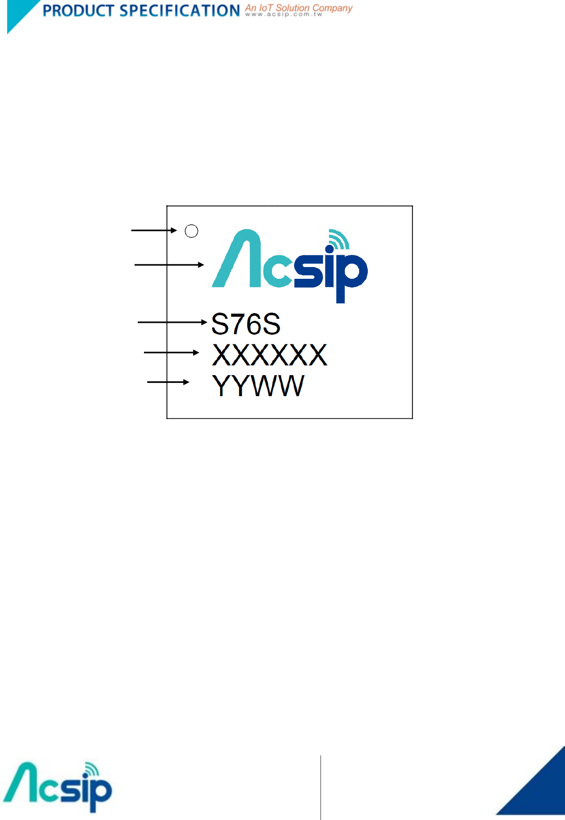 Figure 1 below details the standard product marking for all AcSiP Corp. products. Cross reference to the