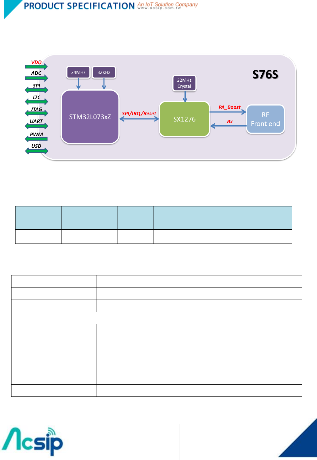 AcSiP Technology S76S LoRa Wireless Communication Module User Manual S502 SPEC