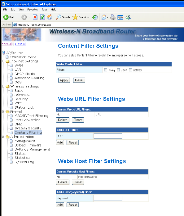 3.6.5 Content Filtering Settings .............................................................................................. 46