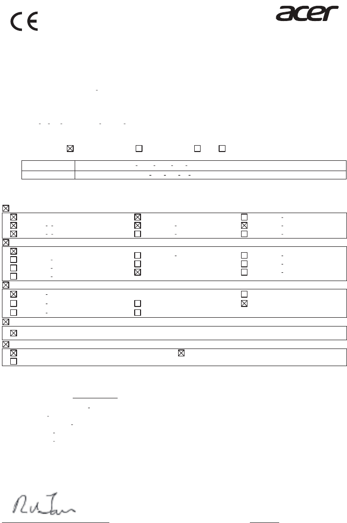 We, Acer Incorporated, hereby declare under our sole responsibility that the product described above is in conformity with the