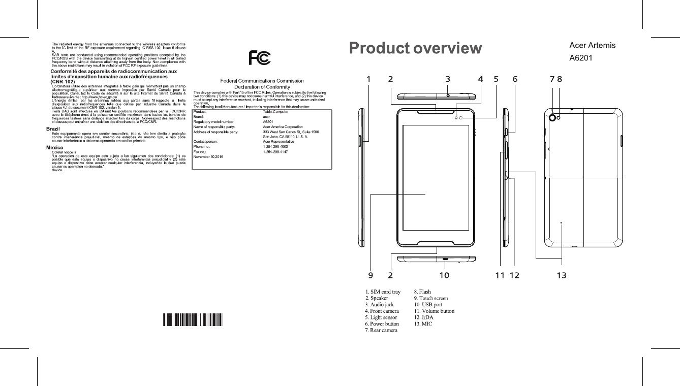 Acer orporated A6201 Tablet Computer User Manual Safety leaf