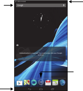 1Touchscreen 7-inch, 1024 x 600 pixel capacitive touchscreen.