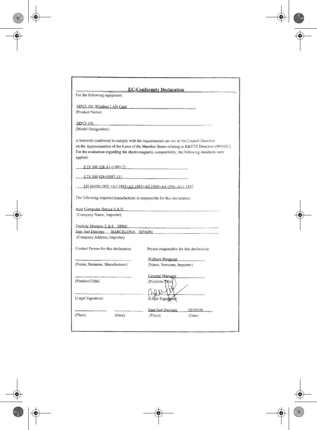 Acer orporated MPCI-101 User Manual WireLAN