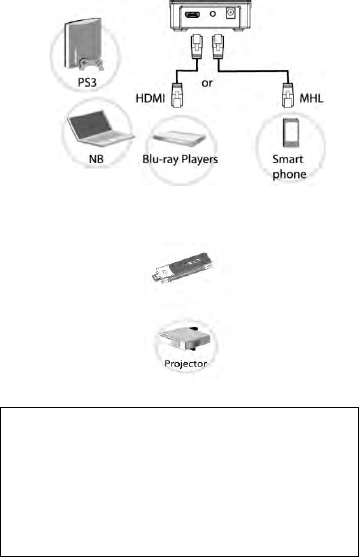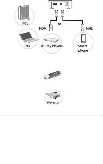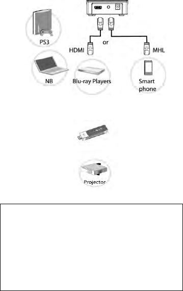 HDMI/MHL 将 HDMI/MHL 线连接到此端口和电视或