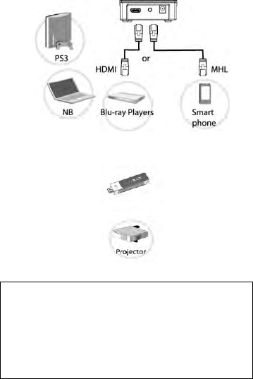 2. 将接收器连接到投影机的 HDMI/MHL 端口。从投影