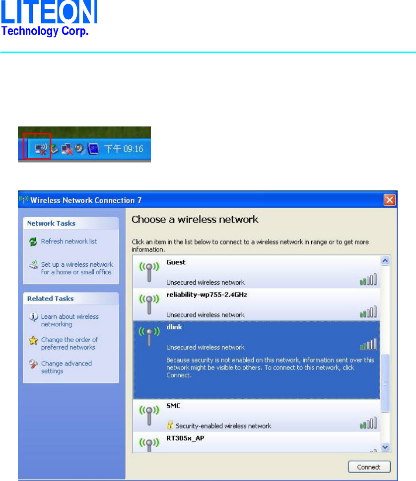 1. Click the Wireless icon to enable Windows Zero Configure.