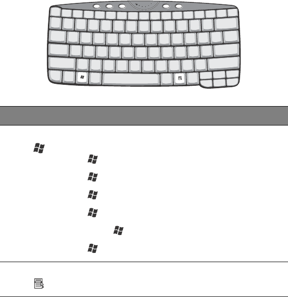 The keyboard has two keys that perform Windows-specific functions.