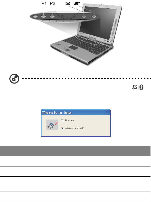 displayed showing the current status of the wireless features.