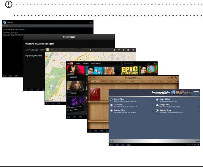 •Acer Sync: Sync your data between your tablet, your computer and the