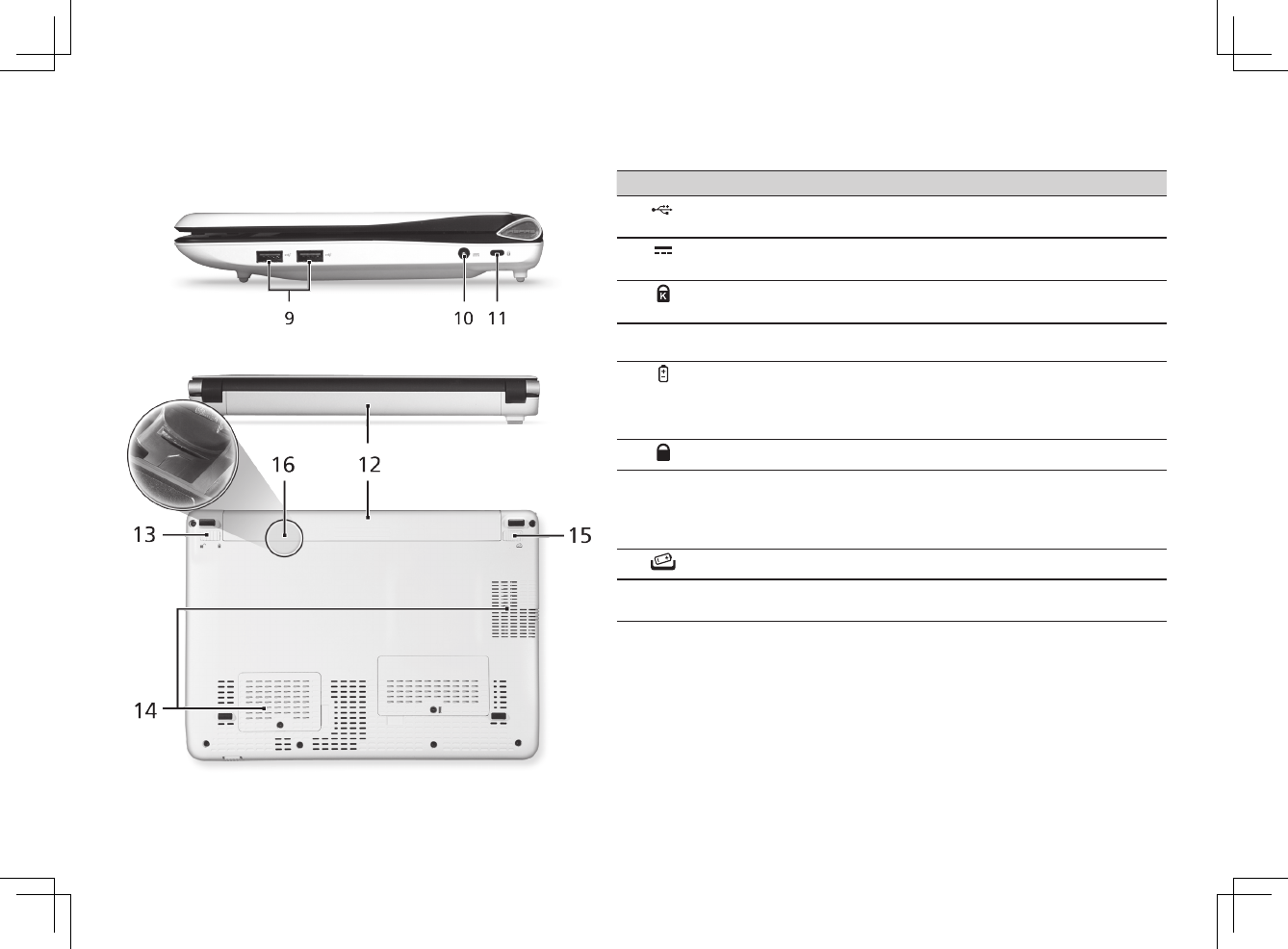 11 Kensington lock slot Connects to a Kensington-compatible