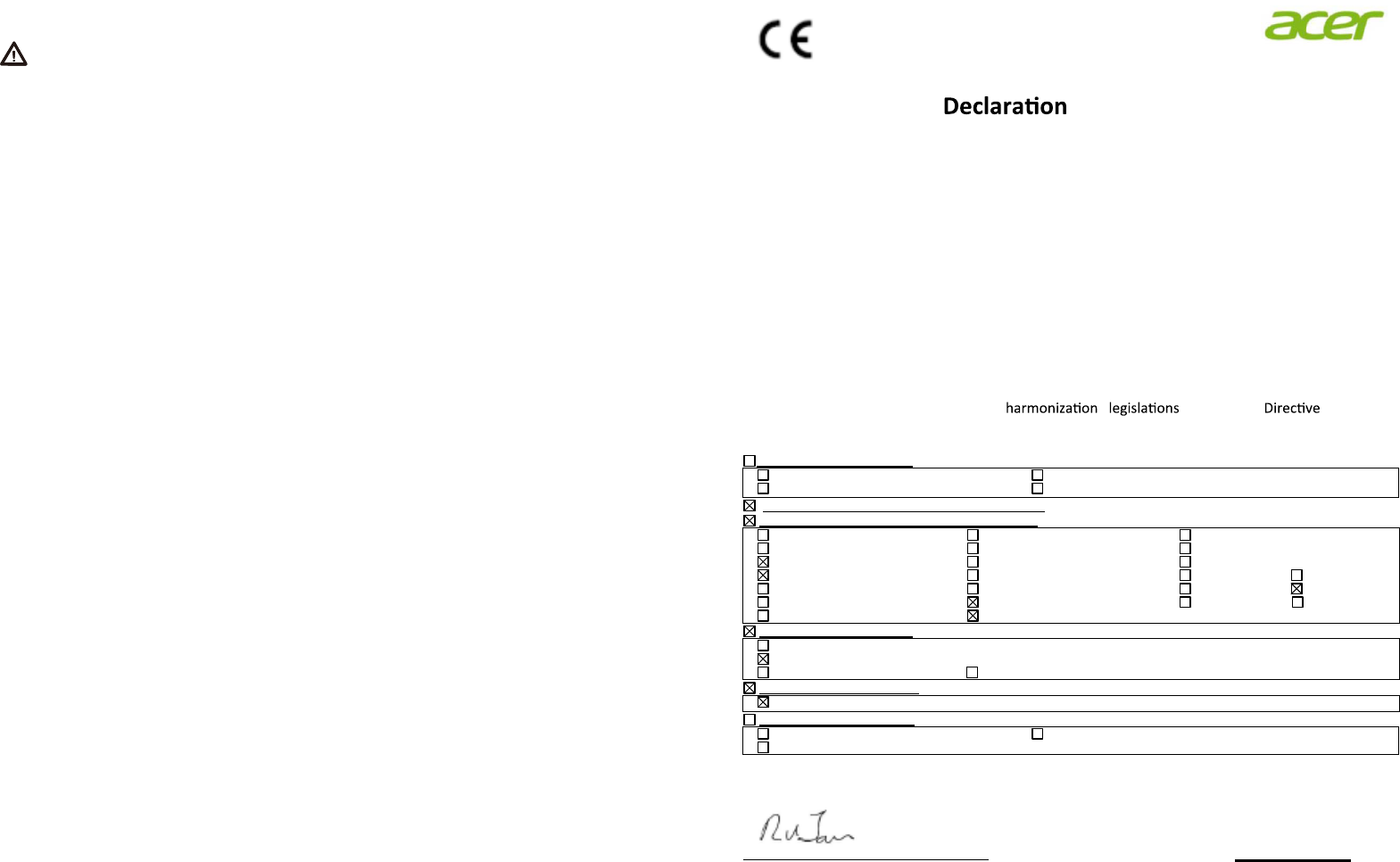 We, Acer Incorporated, hereby declare under our sole responsibility that the product described above is in