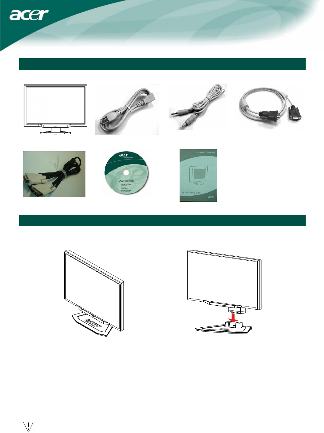 1. Position the monitor on top of the base. 2. Connect the base into the neck of the monitor