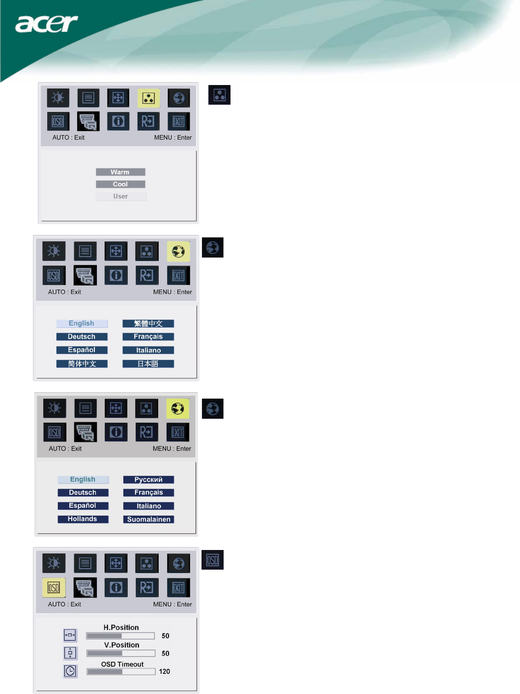 This changes the position of the OSD window on the screen and